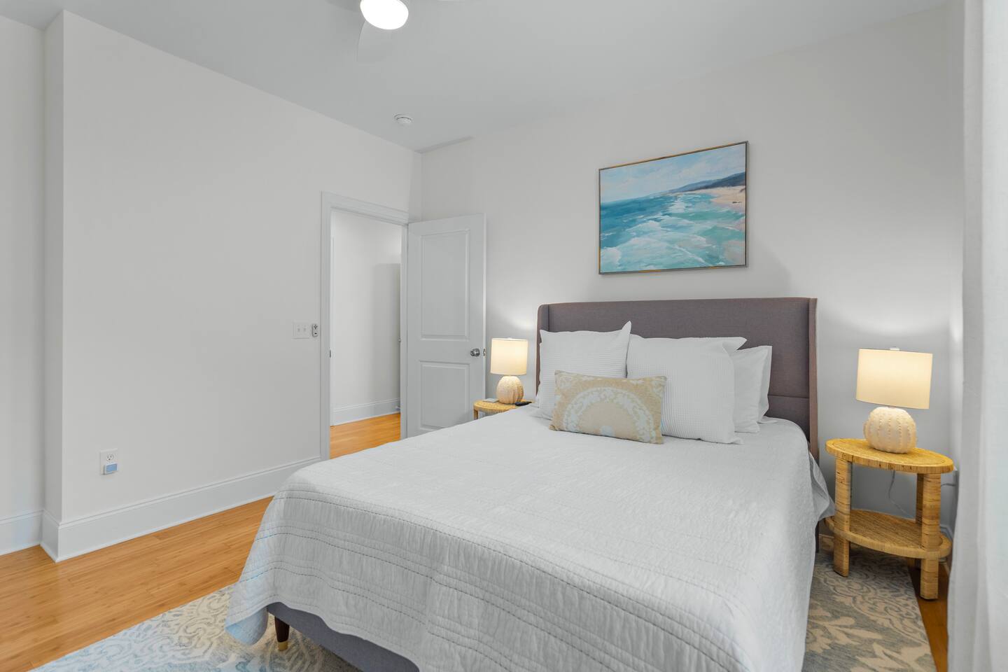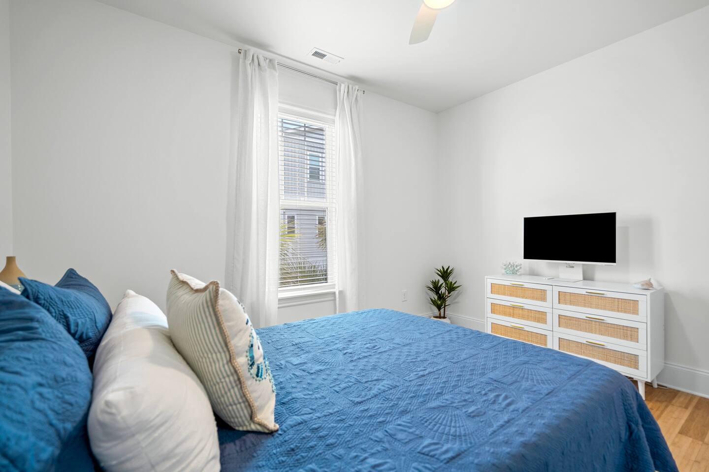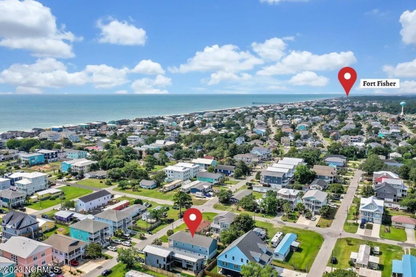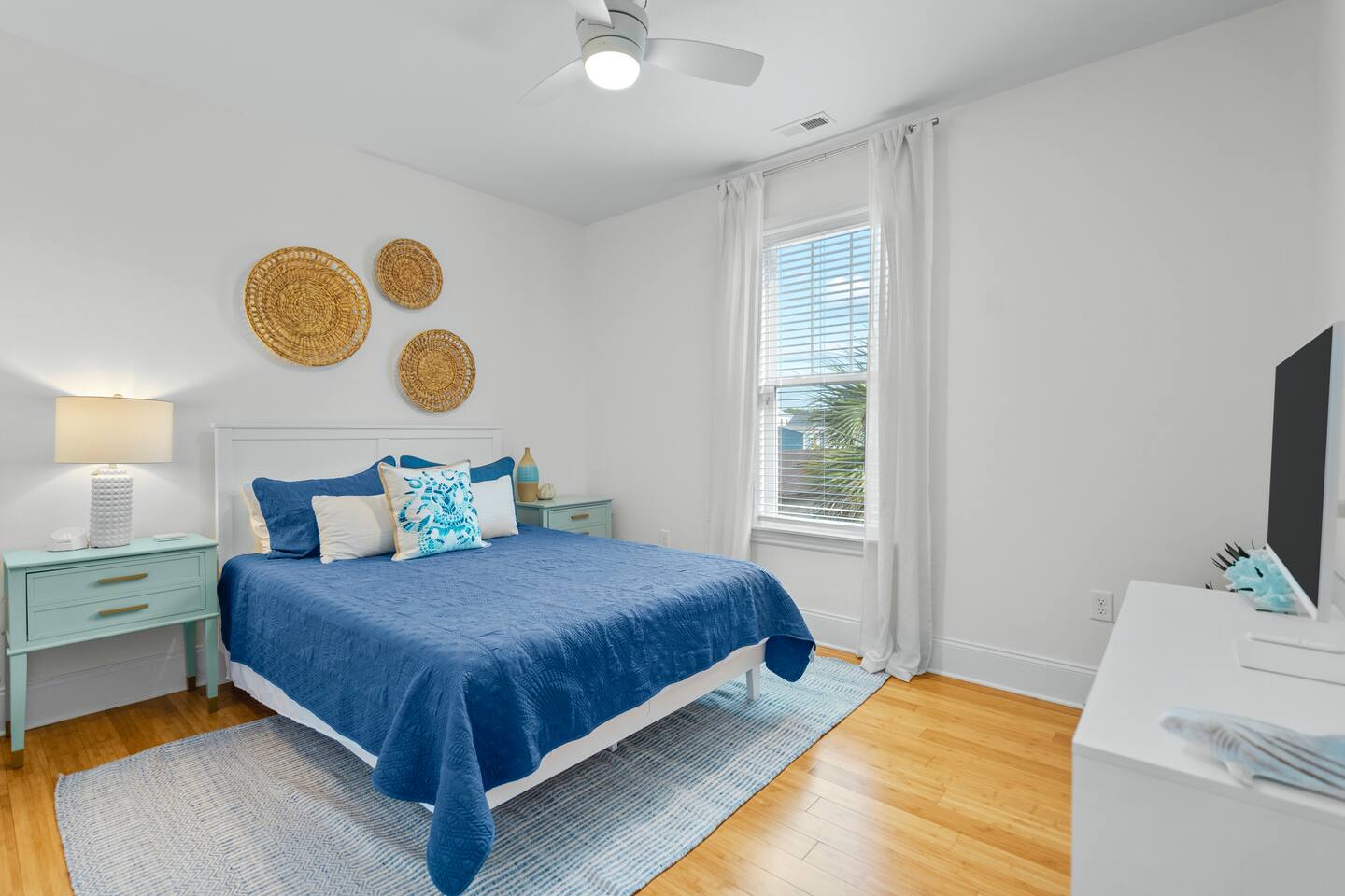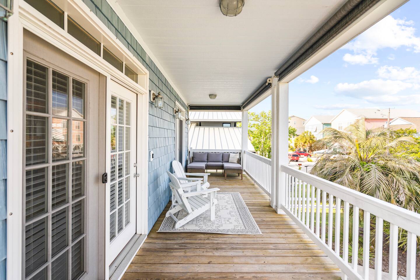 Welcome to The Blue Palm – Your Carolina Beach Retreat! Step into our newly renovated coastal haven, designed for relaxation and fun. The main living area features a plush sofa, large Smart TV, and sun-filled windows that create a bright, airy atmosphere. Cook with ease in the fully equipped kitchen, then step out to the private patio for breezy mornings or unwind with outdoor dining and a BBQ at the covered table. We’ve stocked the home with beach chairs, toys, towels, and a wagon so you can travel light and hit the sand stress-free. Sleeping arrangements are perfect for families and groups: Master suite with king bed + en-suite bathroom Two queen bedrooms with Smart TVs Custom queen bunkroom with its own lounge and Smart TV With three full bathrooms, memory foam mattresses, crisp linens, and a washer/dryer, comfort is always guaranteed. Location highlights: 0.3 miles to Alabama Beach access (with public restrooms) 0.2 miles to Island Greenway Trail 1.5 miles to Kure Beach Pier 1.6 miles to Carolina Beach Boardwalk 1.7 miles to Carolina Beach State Park 4.3 miles to NC Aquarium at Fort Fisher Extra touches include: keyless entry, private parking for 4 cars, an outdoor shower, and stocked bath essentials. Whether you’re here to relax, explore, or make memories with loved ones, The Blue Palm offers the perfect balance of comfort, convenience, and coastal charm.