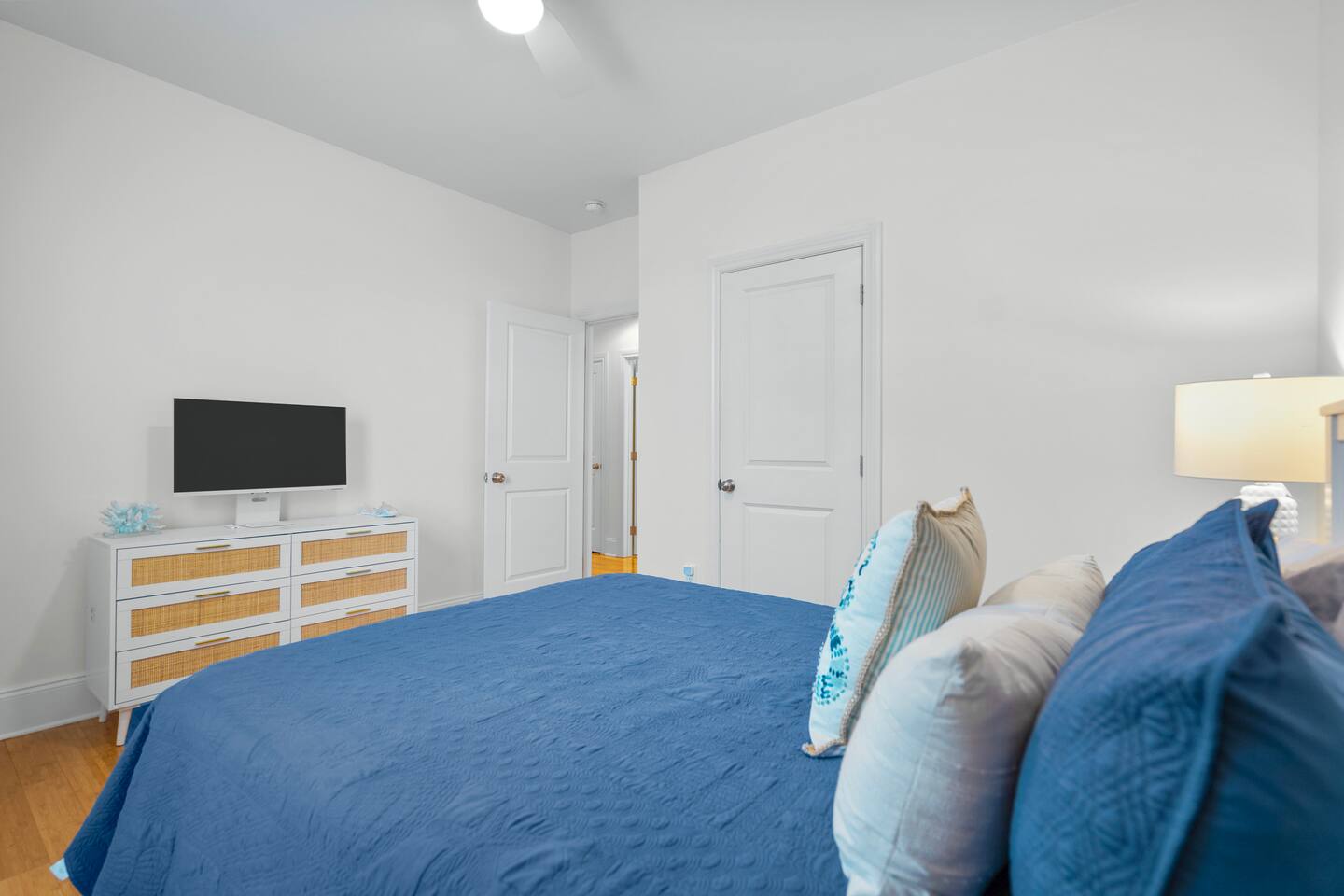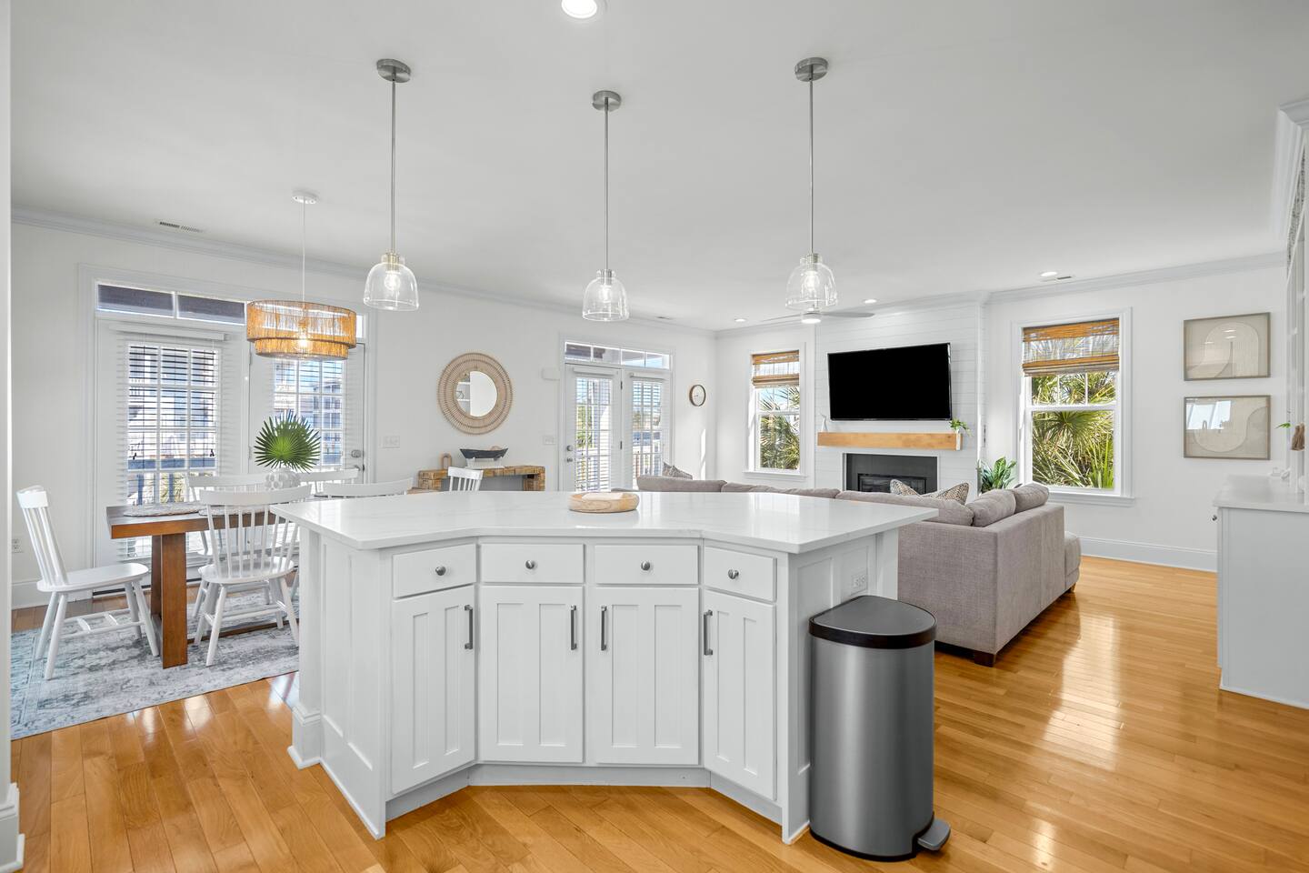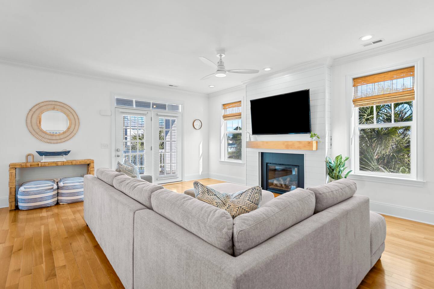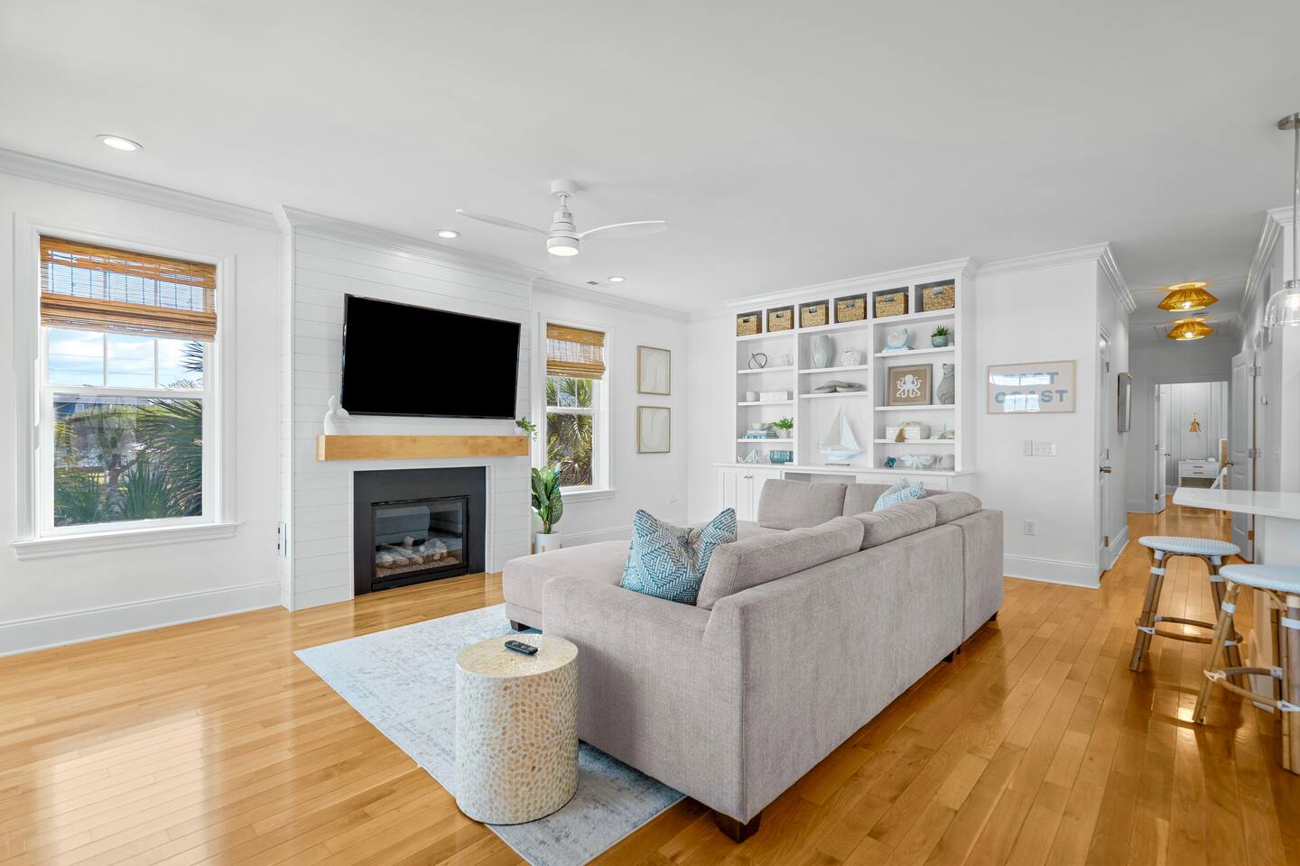 Welcome to The Blue Palm – Your Carolina Beach Retreat! Step into our newly renovated coastal haven, designed for relaxation and fun. The main living area features a plush sofa, large Smart TV, and sun-filled windows that create a bright, airy atmosphere. Cook with ease in the fully equipped kitchen, then step out to the private patio for breezy mornings or unwind with outdoor dining and a BBQ at the covered table. We’ve stocked the home with beach chairs, toys, towels, and a wagon so you can travel light and hit the sand stress-free. Sleeping arrangements are perfect for families and groups: Master suite with king bed + en-suite bathroom Two queen bedrooms with Smart TVs Custom queen bunkroom with its own lounge and Smart TV With three full bathrooms, memory foam mattresses, crisp linens, and a washer/dryer, comfort is always guaranteed. Location highlights: 0.3 miles to Alabama Beach access (with public restrooms) 0.2 miles to Island Greenway Trail 1.5 miles to Kure Beach Pier 1.6 miles to Carolina Beach Boardwalk 1.7 miles to Carolina Beach State Park 4.3 miles to NC Aquarium at Fort Fisher Extra touches include: keyless entry, private parking for 4 cars, an outdoor shower, and stocked bath essentials. Whether you’re here to relax, explore, or make memories with loved ones, The Blue Palm offers the perfect balance of comfort, convenience, and coastal charm.