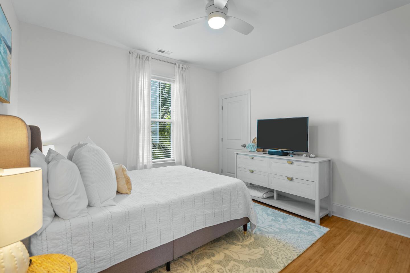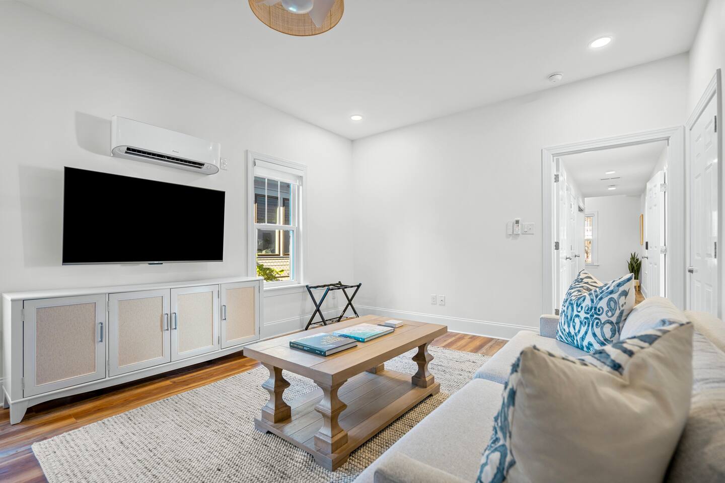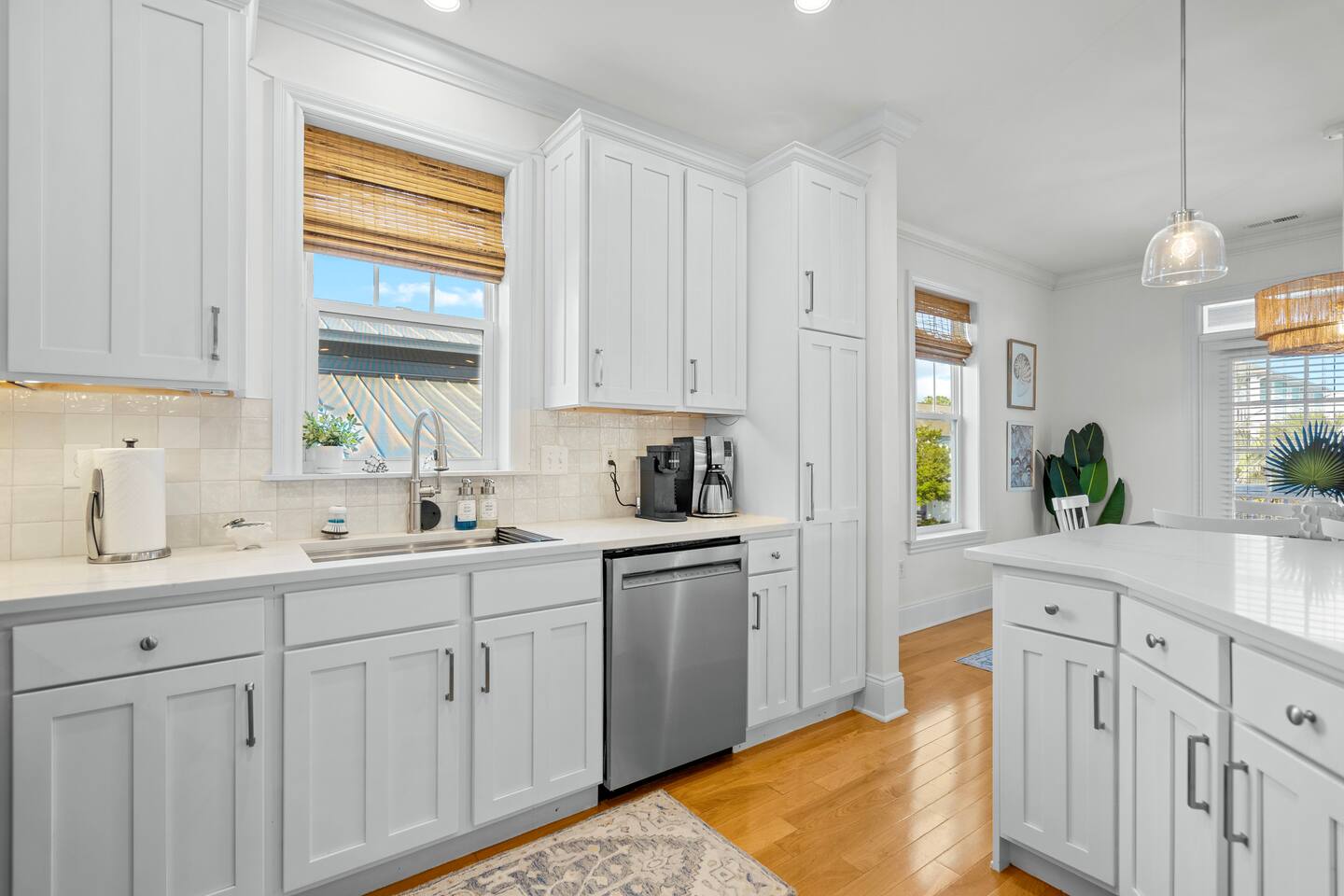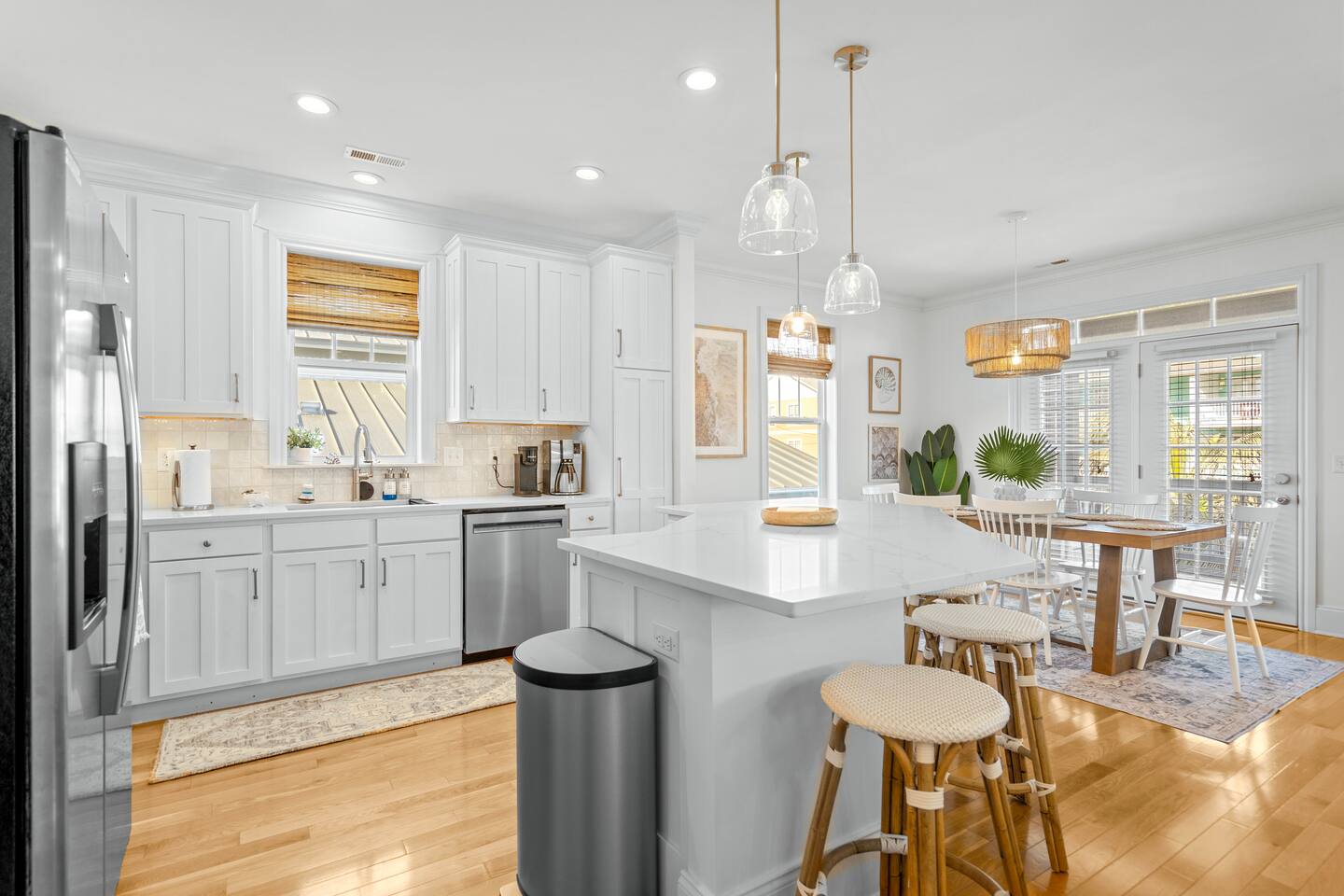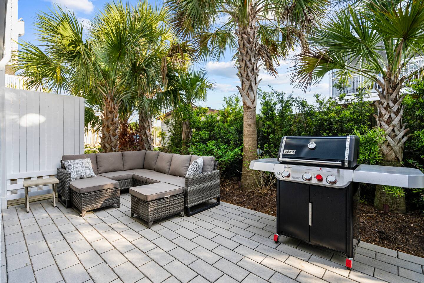 Welcome to The Blue Palm – Your Carolina Beach Retreat! Step into our newly renovated coastal haven, designed for relaxation and fun. The main living area features a plush sofa, large Smart TV, and sun-filled windows that create a bright, airy atmosphere. Cook with ease in the fully equipped kitchen, then step out to the private patio for breezy mornings or unwind with outdoor dining and a BBQ at the covered table. We’ve stocked the home with beach chairs, toys, towels, and a wagon so you can travel light and hit the sand stress-free. Sleeping arrangements are perfect for families and groups: Master suite with king bed + en-suite bathroom Two queen bedrooms with Smart TVs Custom queen bunkroom with its own lounge and Smart TV With three full bathrooms, memory foam mattresses, crisp linens, and a washer/dryer, comfort is always guaranteed. Location highlights: 0.3 miles to Alabama Beach access (with public restrooms) 0.2 miles to Island Greenway Trail 1.5 miles to Kure Beach Pier 1.6 miles to Carolina Beach Boardwalk 1.7 miles to Carolina Beach State Park 4.3 miles to NC Aquarium at Fort Fisher Extra touches include: keyless entry, private parking for 4 cars, an outdoor shower, and stocked bath essentials. Whether you’re here to relax, explore, or make memories with loved ones, The Blue Palm offers the perfect balance of comfort, convenience, and coastal charm.