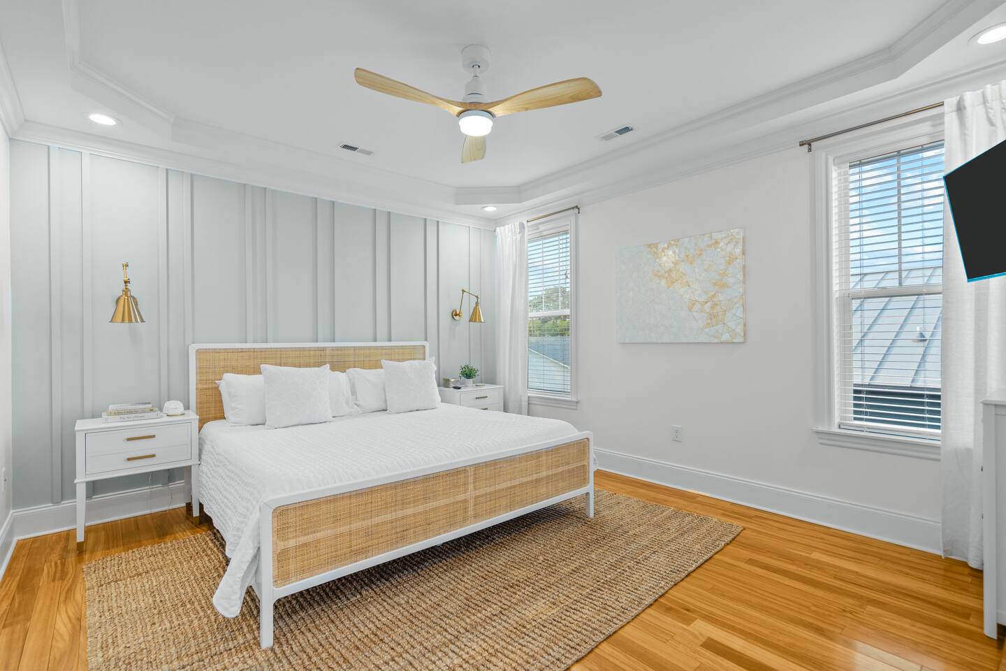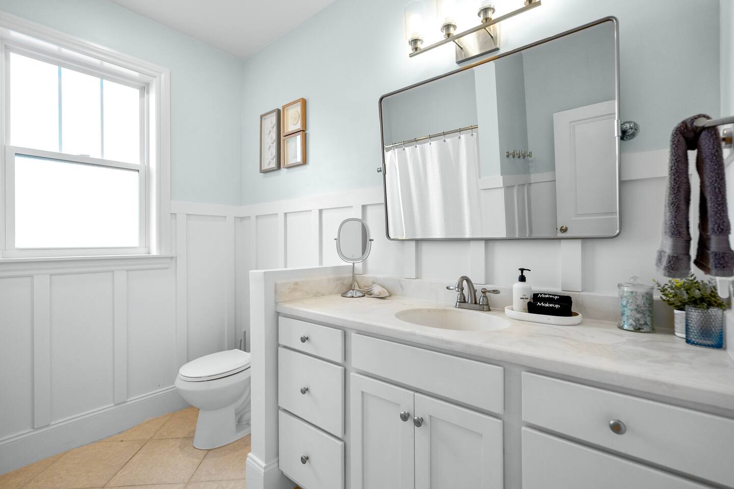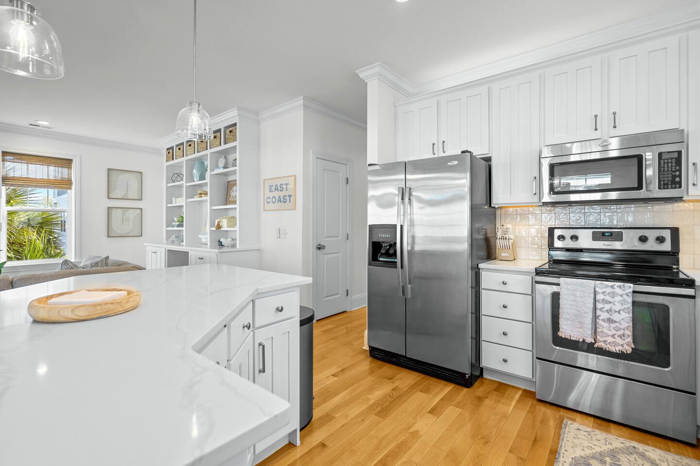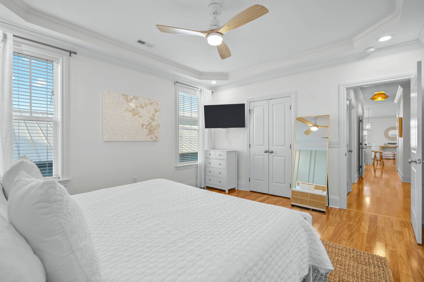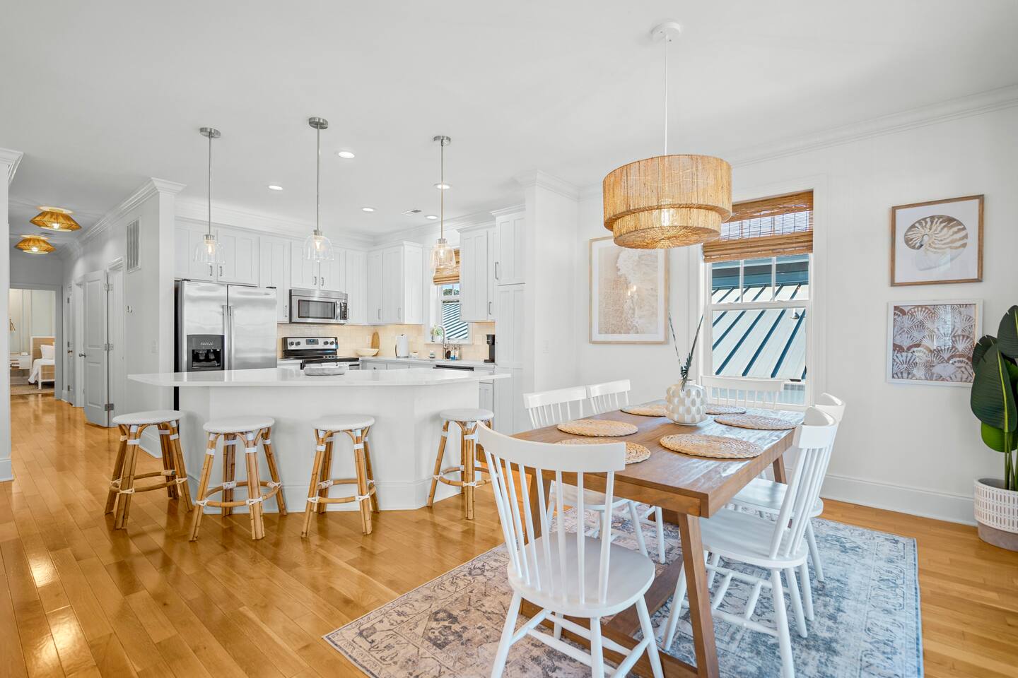 Welcome to The Blue Palm – Your Carolina Beach Retreat! Step into our newly renovated coastal haven, designed for relaxation and fun. The main living area features a plush sofa, large Smart TV, and sun-filled windows that create a bright, airy atmosphere. Cook with ease in the fully equipped kitchen, then step out to the private patio for breezy mornings or unwind with outdoor dining and a BBQ at the covered table. We’ve stocked the home with beach chairs, toys, towels, and a wagon so you can travel light and hit the sand stress-free. Sleeping arrangements are perfect for families and groups: Master suite with king bed + en-suite bathroom Two queen bedrooms with Smart TVs Custom queen bunkroom with its own lounge and Smart TV With three full bathrooms, memory foam mattresses, crisp linens, and a washer/dryer, comfort is always guaranteed. Location highlights: 0.3 miles to Alabama Beach access (with public restrooms) 0.2 miles to Island Greenway Trail 1.5 miles to Kure Beach Pier 1.6 miles to Carolina Beach Boardwalk 1.7 miles to Carolina Beach State Park 4.3 miles to NC Aquarium at Fort Fisher Extra touches include: keyless entry, private parking for 4 cars, an outdoor shower, and stocked bath essentials. Whether you’re here to relax, explore, or make memories with loved ones, The Blue Palm offers the perfect balance of comfort, convenience, and coastal charm.