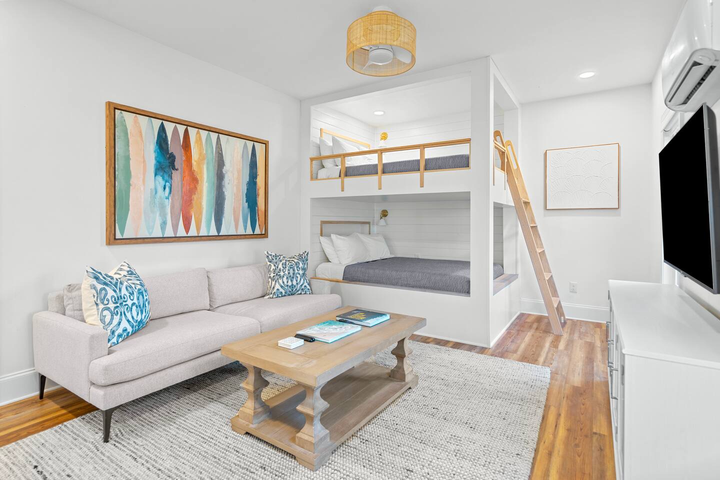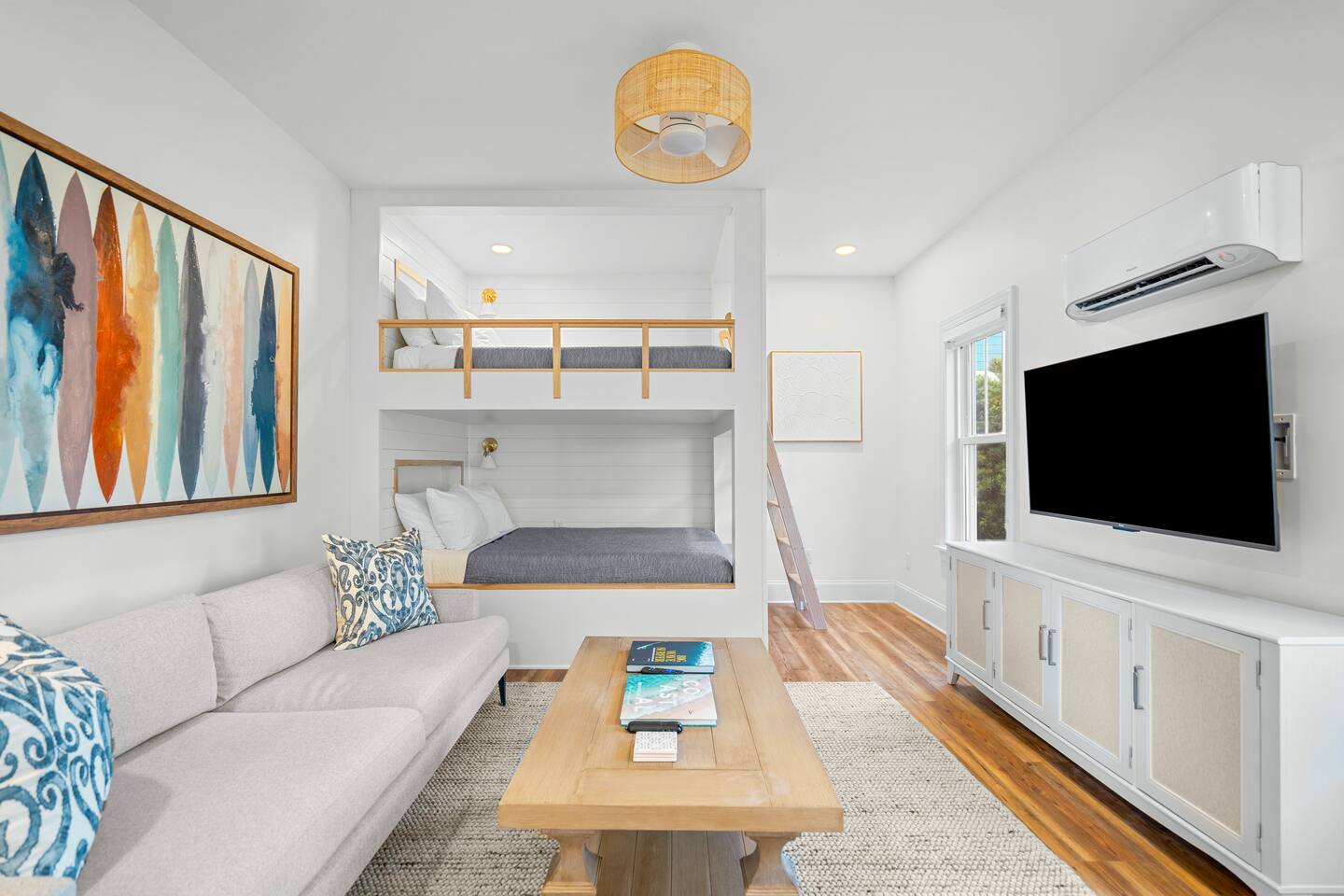Welcome to The Blue Palm, your premier coastal escape! Immerse yourself in a pristine, comfortable atmosphere crafted to elevate your stay. Our property boasts incredible outdoor spaces and a charming bunkroom with custom Queen Size Bunkbeds. We've got you covered for beach fun with complimentary beach chairs and a wagon provided! Located just a short stroll from the ocean, our prime location offers easy access to local attractions like the Boardwalk, Carolina Beach State Park, and Kure Beach.